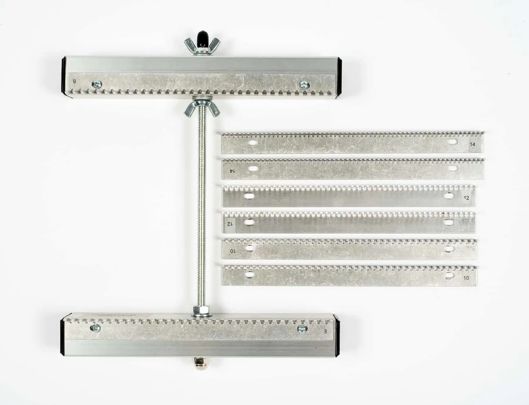 Met de draadstang kun je de hoogte van het weefraam aanpassen. Zo span je de kettingdraden nauwkeurig op, zelfs tijdens het weven. Dit voorkomt losse draden of vervormingen in je werk.
